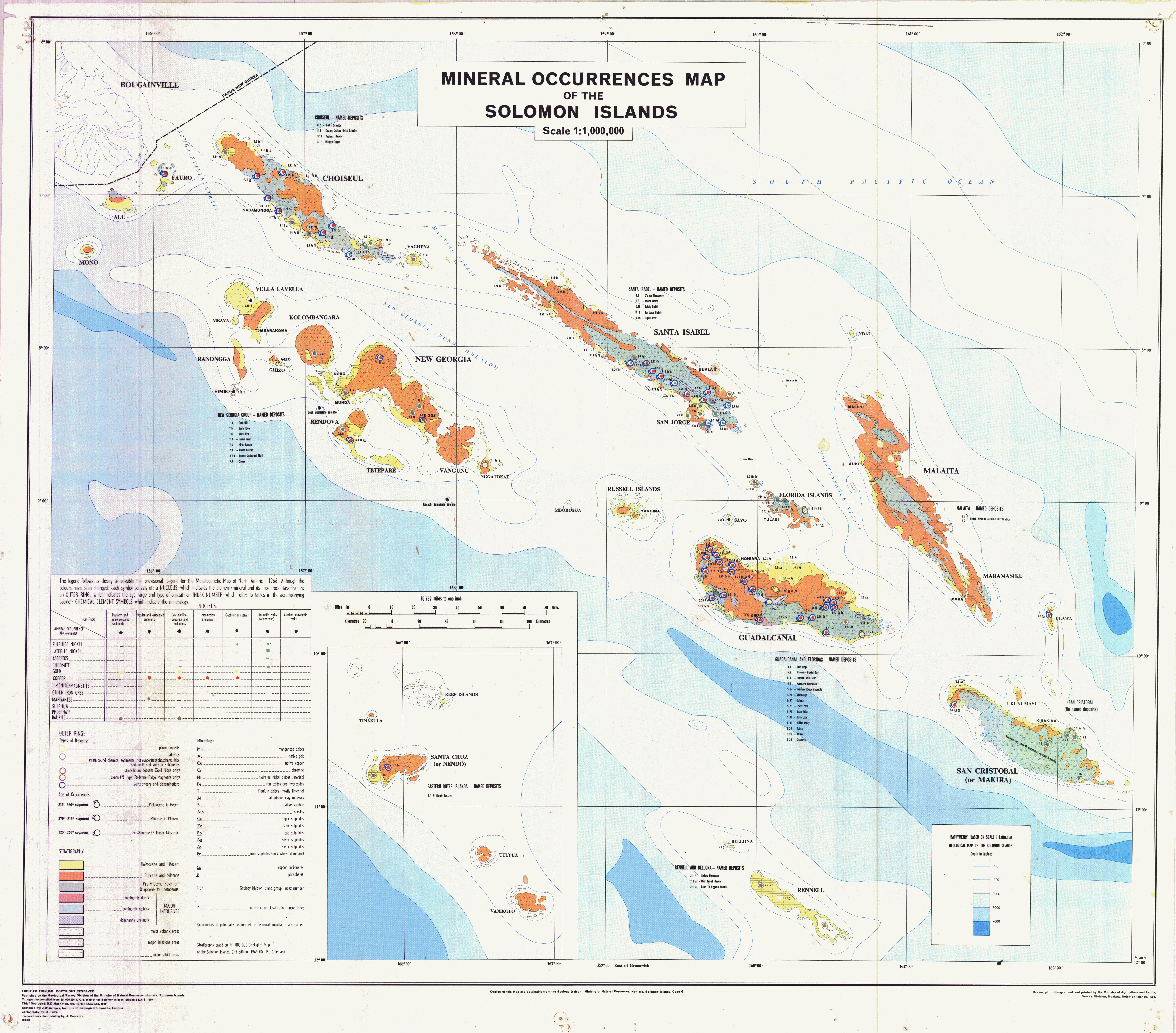 Mineral Occurrence Maps are produced by the Geological Survey Division for investors and potential investors in the mining sector. These maps are meant to clearly indicate mineral deposits that have been identified throughout the Solomon Islands.